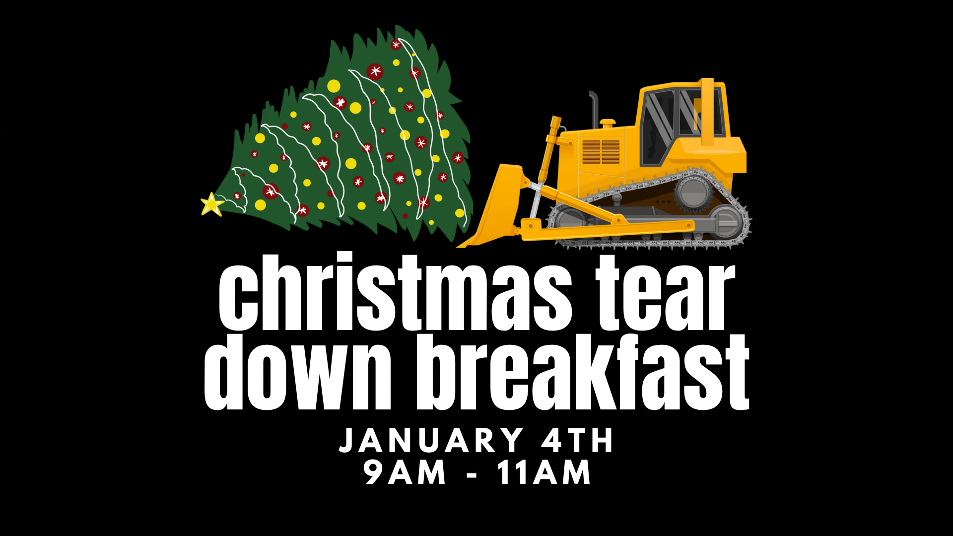 Come on out for some community time and help tear down the Christmas decorations. There will be delicious breakfast provided as well. Everyone is welcome!